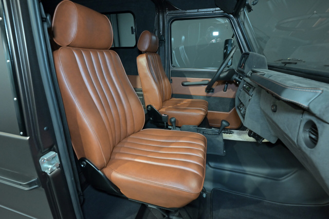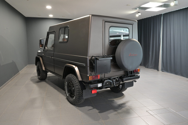 So auch der Puch 230 GE, der von Lorinser Classic aktuell zum Kauf angeboten wird. Der Puch 230 GE kommt mit Hardtop und der besonderen Farbe Citrinbraun Magno. Das Fahrzeug ist mit braunem Leder ausgestattet. Erstbesitzer war das Schweizer Militär. Ausgestattet ist der Puch mit 16-Zoll Stahlfelgen, Goodrich All-Terrain Bereifung, LED Scheinwerfern und einer starren Anhängerkupplung.