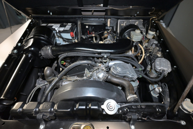 Der Puch wurde von Lorinser Classic umfangreich überarbeitet und befindet sich in einem exzellenten Zustand. Der Unterboden wurde mittels Trockeneis gründlich gereinigt und anschließend konserviert, um optimalen Schutz vor Korrosion zu gewährleisten. Die Karosserie wurde komplett neu lackiert und teilweise mit einer strapazierfähigen Polyurethan-Beschichtung versehen, die für zusätzlichen Schutz sorgt.