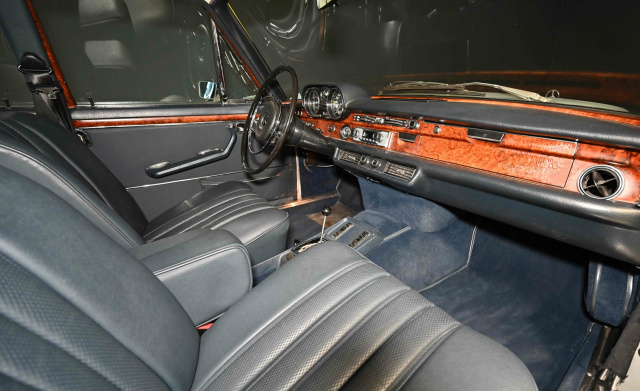 Allerdings kann der 300 SEL nicht nur mit Äußerlichkeiten punkten, sondern vor allem mit seinen inneren Werten. Wie wir alle wissen sind diese ohnehin viel wichtiger als nur ein schickes Äußeres. Während der Vorgänger W108 ein 6-Zylinder mit 160 PS war, hat der W109 leistungsstarke 8-Zylinder mit satten 200 PS und 3.5 Liter Hubraum unter der Haube. Durch den neu entwickelten kleinen V8 Motor konnten neue Maßstäbe in Sachen Geschmeidigkeit und Leistung gesetzt werden. Wer aber ein sportliches Fahrgefühl braucht, kommt hier nicht zu kurz bei einem maximalen Drehmoment von 6500 u/min. Mit an der Entwicklung des neuen Achtzylinder beteiligt war der Top-Elektronik-Hersteller Bosch. Durch das zusätzliche Know-How konnte Mercedes die mechanische Einspritzpumpe mit einer elektrischen ablösen. So ist der V8 Motor mit deutlich mehr Leistung gerade mal 18 Kilogramm schwerer als der V6.