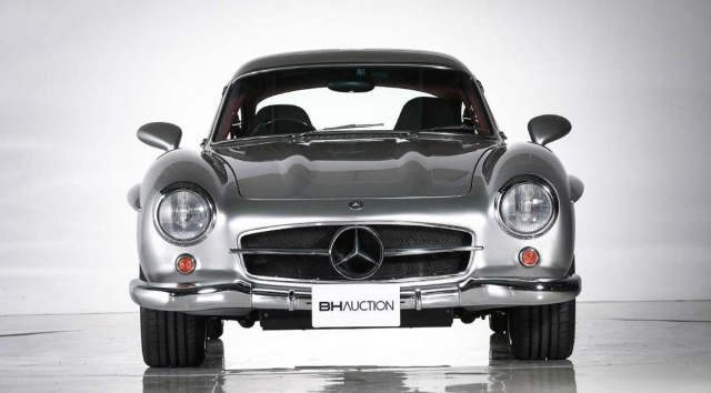 Eins müssen wir zu Beginn klarstellen: Der hier gezeigte 300 SL mit AMG-Technik ist ein Original und ganz offiziell bei AMG in Affalterbach so gebaut worden. Vor ca. 20 Jahren wurden von diesem W 198 mit moderner AMG-Technik 11 Fahrzeuge gebaut. Davon 2 Stück als Rechtslenker. Nun kommt eines dieser 11 seltenen Fahrzeuge beim Auto Salon in Tokyo unter den Hammer. Unter der original-aussehenden Blechkarosse steckt ein originalgetreuer Rohrrahmen, aber auch ein 6,0 Liter-V8 mit 380 PS anstelle des originalen Reihensechszylinders.