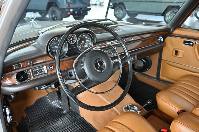 Bei Lorinser Classic wird ein Modell aus dem Jahre 1968 angeboten. Der 300 SEL 6.3 hat erst 57.700 Kilometer auf dem Tacho. So scheint der M100-Motor noch längst nicht eingefahren zu sein. Aus der 6.3-Liter-Maschine holt der V8 vernünftige 250 PS, die mittels 4-Gang-Automatik an die Hinterachse übertragen werden. Das Modell bei Lorinser Classic kommt in Beigegrau metallic und einer Innenausstattung aus Leder in Cognac. Ausgestattet ist die alte S-Klasse mit einem elektrischen Schiebedach, einem Feuerlöscher, einer elektrisch beheizbaren Heckscheibe, einer Klimaanlage, Sicherheitsgurten vorne und einer Warnblinkanlage.