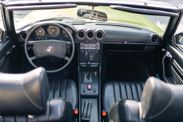 Die Wahl einer Farbe für ein Auto ist oft eine sehr persönliche Entscheidung. In den 1970er Jahren, als der 450 SL Roadster produziert wurde, entschieden sich viele Käufer für klassische Farbtöne wie Schwarz, Weiß oder Silber. Das ist heutzutage auch nicht anders. Doch für diejenigen, die sich von der Masse abheben wollten, bot Mercedes-Benz unter anderem eine citrusgrüne-metallic Lackierung an.