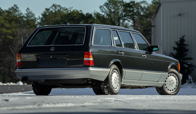 Umbauer des von RM Sothebys angebotenen S-Klasse T-Modells ist die Caro International GmbH, jenes Unternehmen, was u.a. auch ein 190er Cabrio produziert hat. Der sogenannte 560 TEL in der Kombination schwarz/schwarz wurde im Mai 1990 an das Caro-Werk in Hamburg geliefert. Anschließend legten die Karosseriebauer Hand an und verwandelten den 560 SEL in einen 560 TEL. Dabei verbaute man die Rücklichter und das Heck aus der 124er-Baureihe. Um die Passform beim großen S126 zu gewährleisten, wurden beim Anbauen der Teile geringfügige Änderungen vorgenommen. Der überarbeitete Laderaum ist ebenfalls mit Komponenten aus dem S124 ausgestattet. Interessanterweise konnte Caro die hinteren drei Fenster des S124 nicht nutzen - daher sind alle hinteren Fenster des 560 TEL individuell entwickelt.