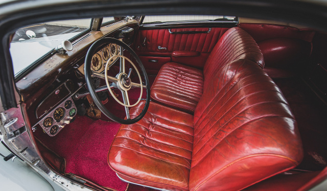 Der 540 K Hebmüller befindet sich noch heute in einem soliden Zustand. Die Lackierung und die rote Lederausstattung der 1960er Jahre weisen allerdings erhebliche Altersspuren auf. Das Fahrzeug müsste also einer Schönheitskur oder einer Restauration unterzogen werden. Wer bei Concours-Veranstaltungen Pokale einsammeln möchte, findet in dem 540 K Hebmüller ein tolles Restaurations-Projekt. Vorausgesetzt, ihr bringt genug Kleingeld mit...