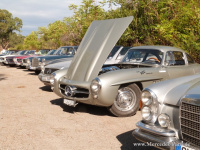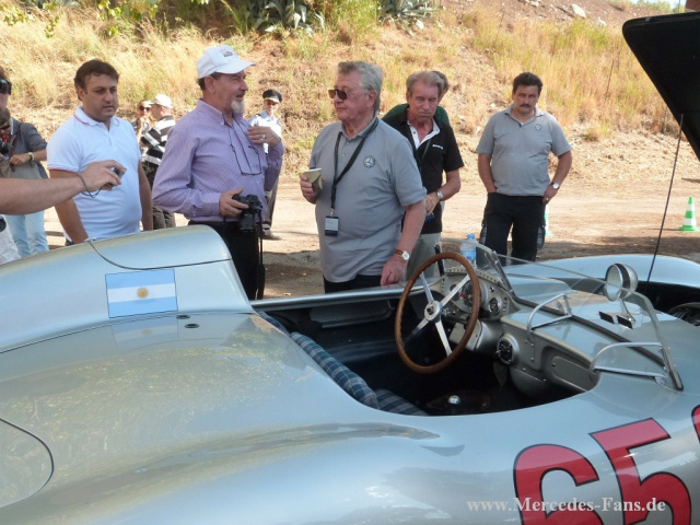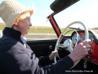 An der Rennstrecke wartete dann am nächsten Morgen im alten Fahrerlager Hans Herrmann mit dem 300 SLR Manuel Fangios auf uns. Hans sollte eigentlich 1955 neben Stirling Moss den damaligen Sieger-SLR steuern, hätten ihn nicht Nachwirkungen eines vorherigen schweren Unfalls in Monaco freiwillig und obwohl er wieder voll im Training war, auf seinen Platz verzichten lassen. Für die SSK und 300 SL in unserer Truppe und natürlich für Hans' 300SLR war die Piste der Sprung zurück in alte, glorreiche Zeiten. Ganz tief im Innern konnte ich, als ich auf der Strecke war, nur bedauern, dass aus meinem Stamm bis auf wenige Ausnahmen nie richtige Rennwagen wurden.