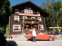 Der hat seine Sache, nachdem er uns in der Woche vor der Abreise mit teilweise Dauerregen und erstem Schnee in den Bergen ziemlich genervt hat, dann ganz hervorragend gemacht. Alle Hoffnung auf die Passroute war schon begraben, als das Internet am Vorabend unserer Abreise für den übernächsten Tag in der Schweiz offenes Wetter meldete. Da gab's nur Eines: Die Panzerkombis für Cabrio-Härtefälle wurden schnellstens noch im Reisegepäck verstaut und zu dritt glaubten wir an die Prognose und unsere Härte im Cabriofahren.