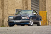 Gut zum Klassik-Charakter des 82er Mercedes passen freilich auch die BBS-Leichtmetaller, die mit 205er bzw. 225er Niederquerschnittreifen von Kumho gesattelt sind. Die Tieferlegung via H&R-Federn tunkt die Rad-Reifen-Kombination attraktiv in die Gehäuse. Von der Niveauabsenkung profitiert natürlich auch das Erscheinungsbild des Mercedes insgesamt.