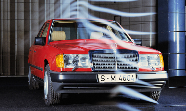 Die 1984 vorgestellte Baureihe ist die erste Fahrzeugfamilie von Mercedes-Benz, die vom Jahr 1993 an den Namen E-Klasse tragen wird. Konsequenter Leichtbau und optimierte Aerodynamik reduzieren den Verbrauch und ermöglichen bessere Fahrleistungen. Für herausragende Fahrsicherheit sorgt die innovative Raumlenkerhinterachse. Eine Pionierrolle übernimmt Mercedes-Benz auch bei der Schadstoffreduktion: Alle mit Benzinmotor ausgerüsteten Modelle sind ab Herbst 1986 serienmäßig mit der Abgasreinigung per geregeltem Dreiwegekatalysator ausgestattet.