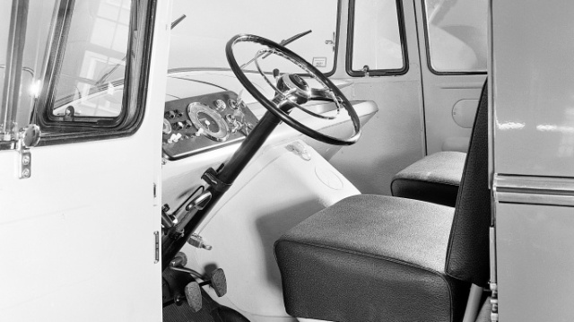 1955: Mercedes-Benz L 319: Frontlenkercockpit mit guter Rundumsicht
