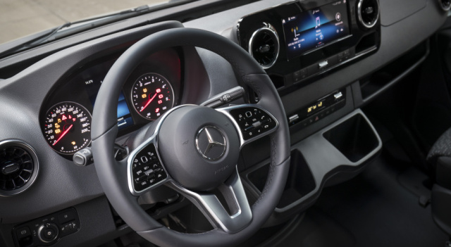 Zu den herausragenden Neuerungen des aktuellen Sprinter zählt unter anderem das Multimediasystem MBUX (Mercedes-Benz User Experience) mit 10,25-Zoll-Touchscreen, Sprachsteuerung und Sprachausgabe. Ein hohes Maß an Komfort erreichen die neuen, ergonomisch geformten Sitze. Sie lassen sich den individuellen Bedürfnissen des Fahrers anpassen und ermöglichen somit eine ergonomisch günstige Haltung auch auf längeren Strecken. Optional ist die Memory-Funktion für die elektrische Sitzverstellung mit an Bord. Neu sind auch Keyless-Start, „Drive Select“, Schaltpaddles am Lenkrad für Automatikgetriebe sowie eine verbesserte Klimaanlage. Die Klimatisierungsautomatik THERMOTRONIC regelt Gebläse, Luftverteilung und Temperatur automatisch.