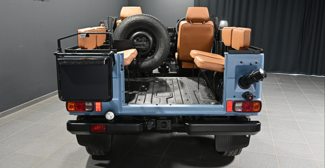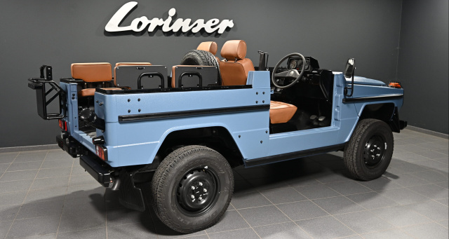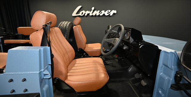Der Rechtslenker kommt auf Stahlfelgen, einer Differentialsperre hinten, mit Kopfstützen vorne, Zusatzscheinwerfern, Steinschlagschutzgittern für die Scheinwerfer und Blinker und einer starr montierten Anhängerkupplung. Bei Lorinser Classic wurde nach Ankunft aus Singapur der Unterboden trockeneisgestrahlt, die Karosserie neu lackiert, der Unterboden konserviert und die Sitze komplett neu bepolstert und bezogen. Dazu gab es eine chinablaue Lackierung mit Polyurethan-Beschichtung.