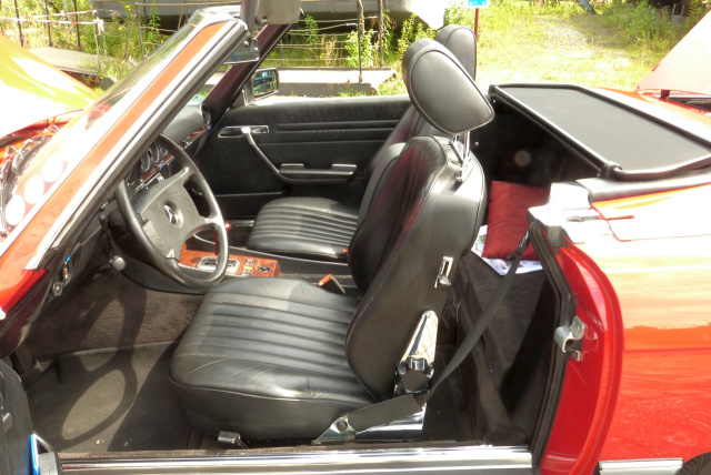 Wie gerade erst eingefahren, so wirkt der 1987 auf die Straße gekommene 300 SL (W 107) von Gerhard Harnisch. Erst 50.000km hat er auf der Uhr, also trotz seines Alters ein Junger Stern. In signalrot (DB 568) steht er da und glänzt, als habe er gerade die Auslieferung hinter sich. Einer aus der langen Geschichte der 107er Baureihe. 1971 auf den Markt gekommen, lief dieser Typ bis 1989 bei Mercedes-Benz von den Montagebändern, allein von der offenen Version R 107 wurden 237.287 Stück gebaut. Das ist sowohl bei der Bauzeit als auch bei der Stückzahl Rekord im SL Segment.