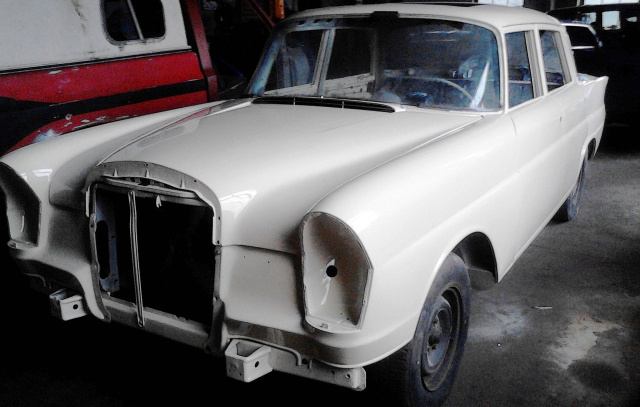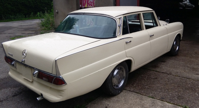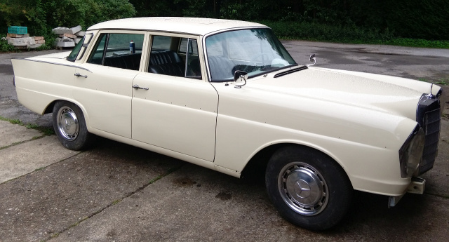 Als Peter die Heckflosse 2014 auf mobile entdeckte, kam es dem Schrauber hauptsächlich auf die schon fertig geschweißte Karosserie an. Zusammen mit seinem Sohn, entschloss er sich dem Klassiker mit Stern wieder neues Leben einzuhauchen. Einen Monat später stand die Flosse dann schon wieder auf den eigenen vier Rädern: Mit einem M180 230 Vergasermotor.