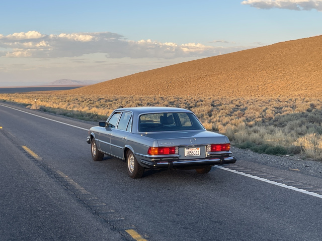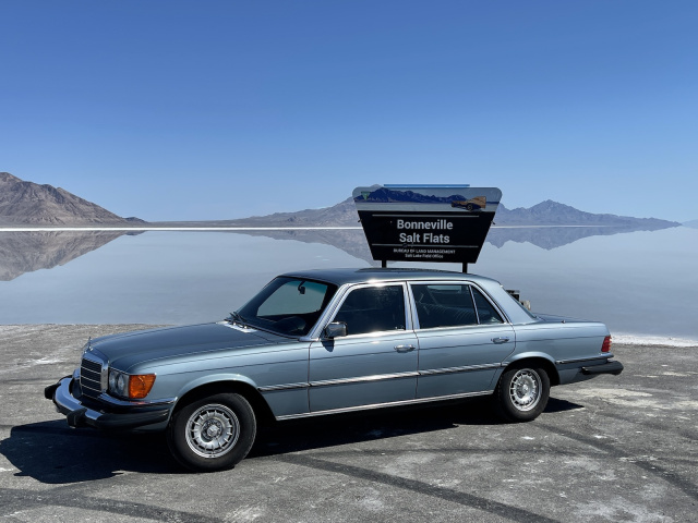 Nach den Waldregionen von Nordkalifornien wird es nach dem ersten Grenzübertritt Richtung Nevada flacher, noch heißer und flotter. Das Thermometer zeigt über 37 Grad im Schatten, den man hier vergeblich sucht. Als sich die Sonne im breiten Innenspiegel senkt, geht es bei düsterer Dunkelheit über die 50er-Route – bekannt als „loneliest road in America“ - via Austin, Eureka bis nach Ely, wo die Zeit in den 70ern stehengeblieben scheint. Neben dem Railway Museum dreht sich hier alles um die leicht heruntergekommenen Spielkasinos. Der nächste Morgen bietet das gleiche exzellente Sonnenwetter, leicht gesunkene Temperaturen und einen blau-grauen 450er-Mercedes, dessen Durchschnittsverbrauch sich nach anfänglichen Amplituden auf knapp 17 Litern eingependelt hat. Nach dem Staatenwechsel Richtung Utah nebst Zeitumstellung sind die großen Salzseen westlich von Salt Lake City nächstes Zwischenziel, wobei man um einen Abstecher am Speedparadies von Bonneville nicht herumkommt. Schade, dass die Salzseen aktuell unter Wasser stehen und der Salzfraß nicht gut für ein 43 Jahre altes Auto sind. Sonst könnte der 450 SEL auf dem See zeigen, dass er im Unterschied zu den meisten US-Konkurrenten lässig deutlich mehr als die erlaubten 80 mph schafft.