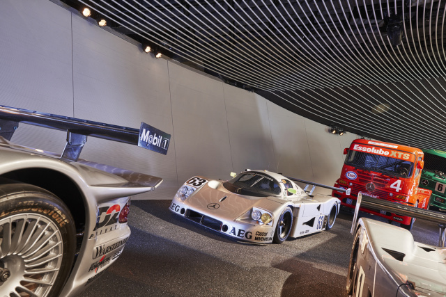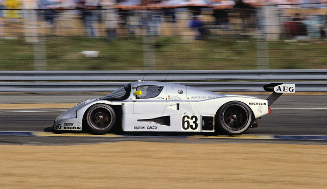 Sauber-Mercedes C 9 heißt das erfolgeiche Auto: Entwickelt hat es der schweizerische Rennstall Sauber, und der Antrieb kommt wie bereits beim Vorgänger C 8 von Mercedes-Benz. Es tritt erstmals 1987 in der Gruppe C der Rennsportwagen an und gewinnt das Saisonfinale des Supercups der Gruppe C auf dem Nürburgring mit Jean-Louis Schlesser am Steuer. In der Saison 1988 kann der nun als Sauber-Mercedes an den Start gehende Rennwagen insgesamt acht Rennen für sich entscheiden. Für die Saison 1989 erhält der C 9 den neuen V8-Biturbo M 119 HL mit 4.973 Kubikzentimeter Hubraum und Vierventiltechnik, der in Qualifying-Abstimmung kurzfristig bis zu 680 kW (925 PS) liefert. Im Rennen sind es rund 530 kW (720 PS).