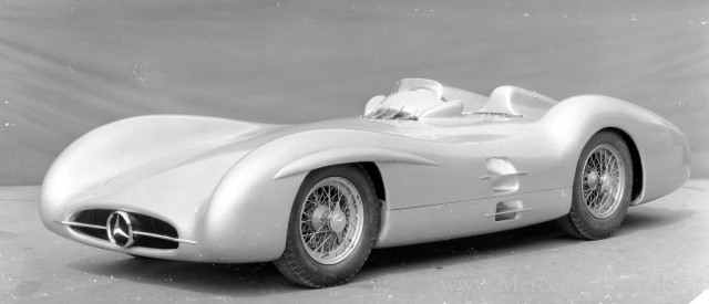 Ein erster Ausflug in den Motorsport der Nachkriegszeit ist im September 1950 die Teilnahme von Karl Kling auf Mercedes-Benz 170 S an der für Sport- und Tourenwagen ausgeschriebenen ADAC-Sechsstundenfahrt auf dem Nürburgring. Dann startet Mercedes-Benz 1951 mit dem Grand-Prix-Rennwagen W 154 aus den 1930er-Jahren bei zwei Rennen in Argentinien. Wirklich erfolgreich ist jedoch erst der 1952 vorgestellte 300 SL Rennsportwagen (W 194), mit dem Mercedes-Benz unter anderem die 24 Stunden von Le Mans und die Carrera Panamericana gewinnt. Die Erfolge des 300 SL beflügeln die 1953 getroffene Entscheidung, ab der Saison 1954 wieder in den Grand-Prix-Sport einzusteigen und dafür einen völlig neuen Rennwagen zu konstruieren.