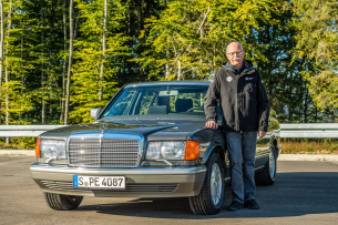Auf die Gegenfrage, wo denn die Geschwindigkeitsbegrenzung festgelegt sei, zückte der Mann eine Art Bibel, in der aber nur stand, dass bei schneller Fahrt mit Reifenschäden zu rechnen sei. Auch die Antwort, dass diese Bestimmung auf die Fahrzeugflotte nicht zuträfe, da sie auf guten Reifen unterwegs seien, stieß auf taube Ohren. „Dann hat er so einen riesen Zinnober gemacht, das wir uns schon hinter Gittern gewähnt haben“, erzählt Frank Knothe. Doch die heikle Situation löste sich auf, als der Gesetzeshüter die Marke der getarnten Fahrzeuge erkannte. Die Miene des gestrengen Beamten hellte sich blitzschnell auf „Der hat Mercedes très bien gerufen, salutiert und wir konnten weiterfahren. Wir haben wirklich Fracksausen gehabt“, schmunzelt der ehemalige Leiter Gesamtfahrzeugversuch und spätere Baureihenchef S, SL und SLK-Klasse.