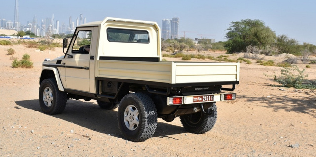 „Vor 3 Jahren entdeckte ich diese G-Klasse in unseren Nachbar-Emirat Sharjah. Sie war seit Jahren auf einem Platz in einem Gewerbegebiet geparkt. Die Fenster waren offen, die Reifen platt und der G befand sich in einem denkbar traurigem Zustand. Allerdings hatte das Fahrzeug erst 25.000 Kilometer auf dem Tacho. Es handelte sich um einen W460 280 GE LWB Palast-Krankenwagen der Herrscherfamilie. Der Besitzer war allerdings nicht bereit den nahezu rostfreien Wagen zu verkaufen."