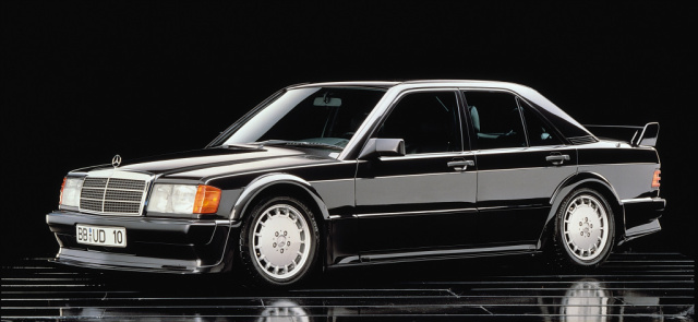 Der 190 E 2.5-16 Evolution wird auf dem Genfer Automobil-Salon 1989 vorgestellt. Sein Vierventilmotor leistet 143 kW (195 PS). Die Änderungen an der Karosserie umfassen einen markanten Bugflachspoiler, einen vergrößerten Heckflügel mit Dreieckkeil sowie größer dimensionierte Radhaus-Ausschnitte mit deutlichen Kotflügelverbreiterungen. Innerhalb von drei Monaten wurden 502 in „Blauschwarz Metallic“ lackierte Exemplare gefertigt.