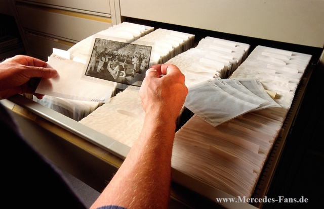Zukunft braucht Herkunft, und Innovation baut auf Tradition auf. Für diese Werte steht Mercedes-Benz Classic mit der Abteilung Archive und Sammlung in ganz besonderer Weise. Das Archiv, eines der größten Wirtschaftsarchive ganz Europas und wohl das kompletteste in der Autoindustrie, ist Gedächtnis der außergewöhnlichen Unternehmens-, Produkt- und Ideengeschichte seit der Erfindung des Automobils im Jahr 1886. Seine Bestände zeugen ebenso von der Fähigkeit zum visionären und konstruktiven Entwickeln, wie sie eine vielfältige Wirtschafts- und Sozialgeschichte dokumentieren.
