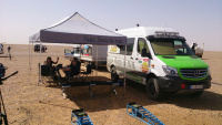Die Daimler Damen Astrid Ebermann und Sabrina Trillmann meistern die 3 Checkpoints und die Navigation zurück zum Biwak ohne Schwierigkeiten und sichern sich Platz 1 inder SUV Kategorie und den ersten Platz in der Startreihe. Dicht gefolgt von den Damen der Deutschen Handwerkszeitung, Claudia Uhlmann und Bianca Mühlhammer, die - zum ersten Mal in der Wüste - noch ein bisschen mehr Zeit brauchen um sich in der völlig ungewohnten Umgebung zurechtzufinden. Sie belegen den Startplatz 2 für die erste Etappe. Die beiden Mercedes- Benz Sprinter schaffen den Parcours ohne irgendwelche Probleme.