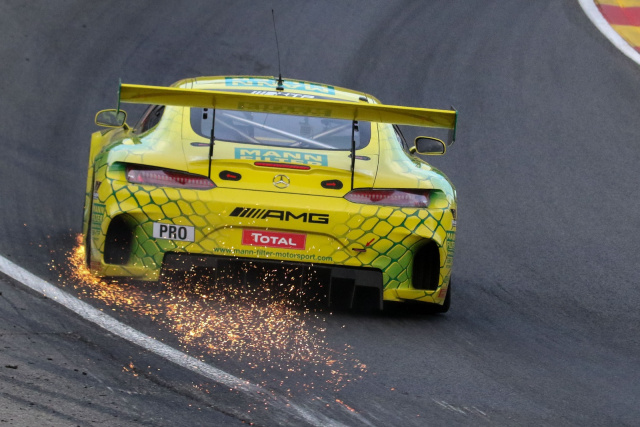 Vom 13. Startplatz aus hatte die gelb-grüne „MANN-FILTER-Mamba“ auf der 7,004 Kilometer langen Berg- und Talbahn in den belgischen Ardennen von Beginn an ein gutes Renntempo vorgelegt und den Kontakt zu den Top-10 gehalten, als eine Durchfahrtsstrafe wegen Überschreitens der zulässigen Höchstgeschwindigkeit von 50 km/h in der Boxengasse den Boliden mit der Startnummer 84 aus den Top-20 warf. In der Folge aber lieferten sowohl die drei Piloten als auch das mit dem Einsatz des Mercedes-AMG GT3 betraute Team HTP Motorsport eine tadellose Leistung ab und kämpften sich während der Nachtstunden wieder bis in den Bereich der Punkteränge nach vorne. Am Ende misslang der Vorstoß in die Top-10, weil Schlusspilot van der Zande kurz vor der Zieldurchfahrt einen so genannten „Splash’n Dash“ einlegen und einige Liter Benzin nachtanken musste, worauf er noch einen Platz verlor.