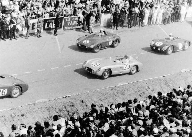 Es ist kurz nach 18 Uhr, als es passiert. Mike Hawthorn (Jaguar) zieht zum Überrunden eines langsameren Austin Healey plötzlich rüber, bremst scharf – der dahinter fahrende Lance Macklin muss ausweichen, gerät ins Schlingern. Pierre Levegh, der mit seinem Mercedes 300 SLR direkt hinter ihm unterwegs ist, hat keine Chance. Mit über 200 km/h prallt Levegh auf Macklins Heck, wird in die Luft katapultiert – und stürzt in die Zuschauerränge.