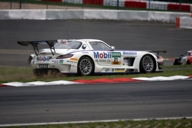 Was für ein turbulentes Rennen! Beim Samstag-Rennen der ADAC GT Masters am Samstag waren gleich vier Mercedes Benz SLS AMG GT3 am Start. Neben den Fixstartern Zakspeed und HP Racing meldeten auch ROWE Racing und Car Collection je einen SLS zum Rennen an.