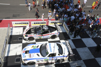 Schon das erste Rennen am Samstag hatte einiges zu bieten! Dominik Baumann (22, A) und Jens Klingmann (24, Leimen/beide BMW Sports Trophy Team Schubert) waren im BMW Z4 erfolgreich. Auf dem Lausitzring holten die BMW-Piloten ihren zweiten Sieg in drei Rennen und gewannen beim heißesten Rennen in der Geschichte der "Liga der Supersportwagen" bei Temperaturen von zwischenzeitlich mehr als 38 Grad.