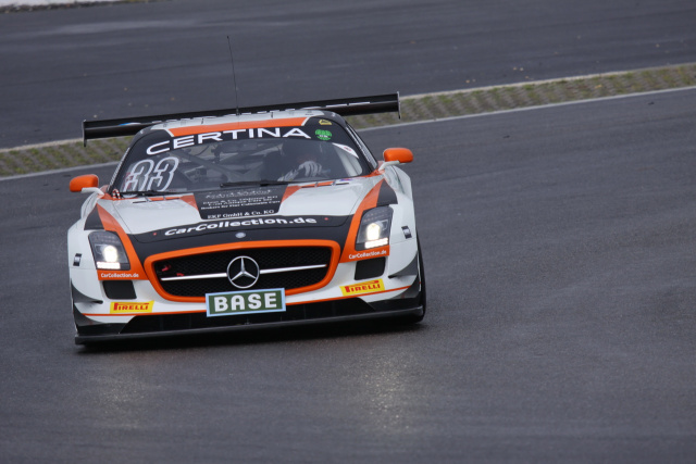 Beim zweiten Lauf am Sonntag startete Renger van der Zande, nachdem der SLS AMG GT3 vom Team Zakspeed ans Ende des Feldes versetzt wurde, von Platz 13 aus. Gleich am Start machte van der Zande Plätze gut, wurde dann aber durch die erste Safety-Car-Phase eingebremst. Beim Restart konnte er erneut einige Kontrahenten überholen und fuhr bis auf Platz neun nach vorne. Zur 25. Rennminute öffnete sich das Boxenstoppfenster. Der Pflichtboxenstopp sollte eigentlich erst zum Ende des Boxenstoppfensters, also kurz vor der 35. Rennminute erfolgen.
