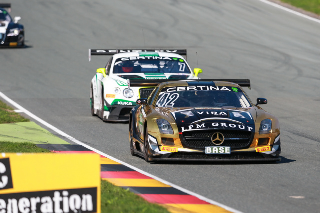 Am Sonntag lief es leider nicht ganz so gut. Während HP Racing wiederum einen sehr guten 5. Platz im bildschönen, schwarz/gold lackierten SLS nach Hause fuhr, musste Sebastian Asch seinen SLS AMG GT3 leider mit Lenkungsdefekt vorzeitig abstellen. Schon zuvor musste man wegen eines Frühstartes eine 5-Sekunden-Strafe hinnehmen. Der Vorsprung in der Meisterschaft schmolz auf 23 Punkte.