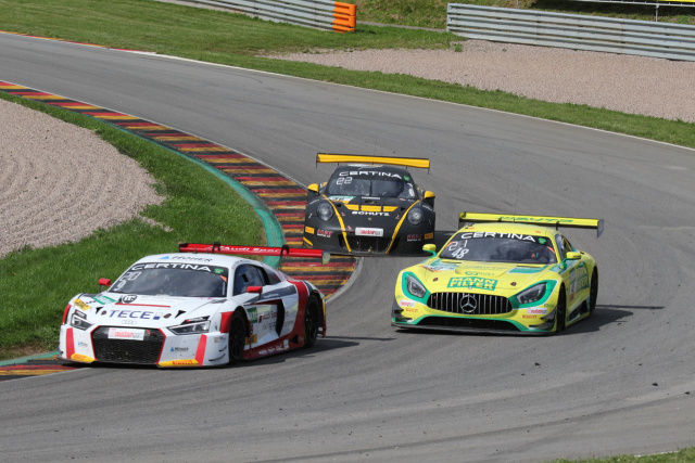 Als dann Sebastian Asch von Mortara übernahm, kam er ganz knapp vor dem Ludwig-Nachfolger Luca Stolz zurück auf die Strecke. Stolz attackierte sofort und drängte Asch beim Überholversuch von der Strecke, was ihm eine Verwarnung (allerdings ohne Folgen) der Rennleitung einbrachte. Danach machte sich Stolz auf die Jagd nach Patrick Assenheimer, der inzwischen von Maximilian Götz übernommen hatte. Vorn zog Nicolai Sylvest im Zakspeed seine Bahnen. Kurz vor Rennende spielte wieder einmal das Safetycar Schicksal, das durch einen Einschlag eines Lamborghini ausrücken musste.