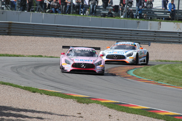 Im Gegensatz zu gestern lief der Start heute gesittet ab. Vorn behielten alle ihre Positionen. Weiter hinten musste Marvin Kirchhöfer durch den Kies und fiel ans Ende des Feldes zurück. Yelmer Buurman lieferte an der Spitze eine Glanzleistung ab und hielt Maximilian Götz im HTP-Mercedes locker auf Distanz. Dahinter kämpften Edoardo Mortara und Luca Ludwig um Rang drei. Bewegung brachte erst der obligatorische Boxenstopp in die Spitzengruppe. Als erster kam Luca Ludwig an die Box, um einen Undercut gegen den „Pink Panther“ zu versuchen.