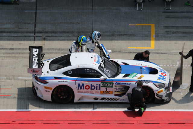 Das AMG Customer Sports Team Zakspeed war mit hohen Erwartungen in die Lausitz gereist. Als Titelverteidiger will man auch diese Saison mit dem neuen Mercedes-AMG GT3 ein deutliches Wort in der Meisterschaft mitreden. Nach gutem Auftakt in Oschersleben geriet man in den letzten Rennen am Sachsenring allerdings ein wenig unter Druck. Zudem macht dem Mercedes-AMG GT3 eine neue Einstufung in der Balance of Performance zu schaffen, die ihm einen um 1 Millimeter kleineren Luftmengenbegrenzer bescherte. Pilot Luca Ludwig war sich schon vor dem Rennen sicher: " Uns fehlen hier 10 km/h Topspeed auf die Spitze! Der kleinere Restriktor scheint dem Auto sehr zu schaffen zu machen. Mit mehr Gewicht (eine andere Möglichkeit der Restriktion, Anm. d. Red.) kommt der GT3 dagegen besser klar."