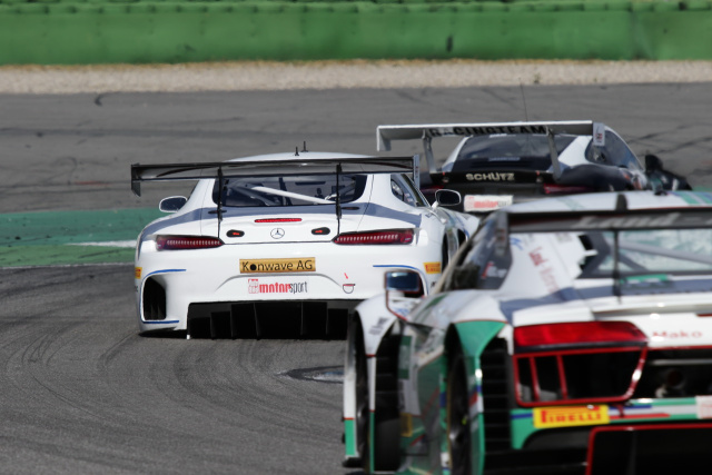 Vor strahlendem Sonnenschein und einer Kulisse vor mehreren Tausend Zuschauern ging es am Sonntag ins Finale der Jubiläumssaison: Am frühen Morgen platzierten Ludwig und Rogivue die beiden Zakspeed-AMG’s auf den Startplätzen fünf (Rogivue) und zwölf (Ludwig). Im Getümmel gestartet kämpfte Ludwig mit viel Verkehr und konnte kaum Plätze gutmachen. „Ich konnte einfach nichts machen bei dem ganzen Verkehr“, so Ludwig. Auch Rogivue kämpfte mit dem Anschluss und verteidigte tapfer die sechste Position. Ein heftiger Unfall des bis dato Titelanwärters Jules Gounon (Callaway Competition) überschattete den finalen Lauf und sorgte für eine etwa halbstündige Unterbrechung des Rennens.