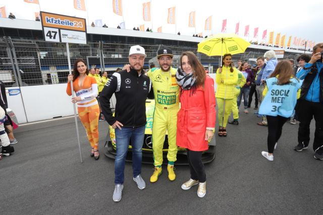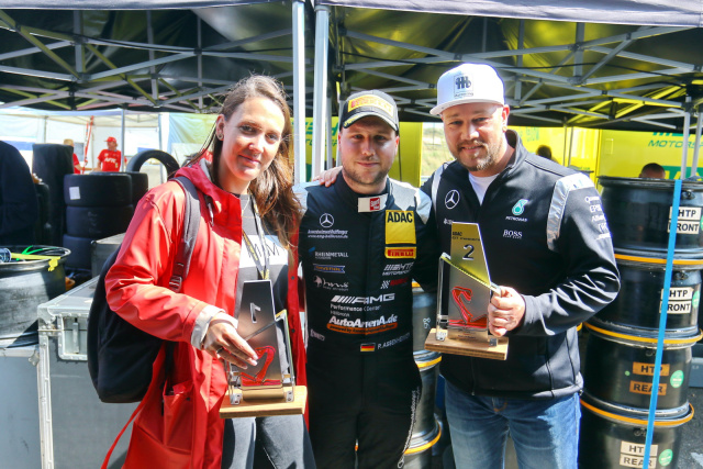 Dass Maximilian Götz an diesem Wochenende mit seiner MANN-FILTER Mamba die Tabellenführung eroberte, war ein zusätzlicher Bonus für unsere Gewinner. Auch der ebenfalls im HTP-Team startende Patrick Assenheimer war sehr erfolgreich, was Patrick und seine Frau nutzten, um ihm herzlich zu gratulieren und einmal einen echten, champagnerbespritzten Pokal in den Händen zu halten.