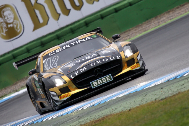 Ludwig behielt aber die Nerven und wehrte souverän weitere Angriffe von Bernd Schneider im anderen SLS sowie Philip Geipel im Audi ab. Auch der Boxenstopp mit Wechsel auf Sebastian Asch klappte problemlos, so dass man sich danach auf den sicheren fünften Platz wieder fand. Der BMW kämpfte sich noch auf den dritten Platz und somit auf das Podium vor, was ihm aber nicht für den Titel reichte. Und so fuhr Sebastian Asch bei schwierigen, feuchten Bedingungen am Ende ungefährdet zum Titel!