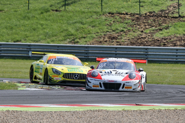 Im Rennen sollte es für das Duo Assenheimer / Schmid dann nach vorne gehen, aber eine Massenkollision kurz nach dem Start beendete die Aufholjagd, noch bevor sie begonnen hatte. Im Startgerangel bekamen Assenheimer und sein Mercedes-AMG GT3 mehrere Seitenhiebe von der Konkurrenz, die den Schwaben letztendlich zwangen, sein Fahrzeug in der Box abzustellen. Vermeidbar wäre das gewesen, wenn Assenheimer den Notausgang in Kurve eins hätte nehmen können. Nachdem die Streckenverantwortlichen diesen aber vor dem Rennen verengten, wodurch der Mercedes nicht mehr ohne Problem durch fahren konnte, war das keine Option mehr und das Punktegeschenk am Geburtstag blieb aus.
