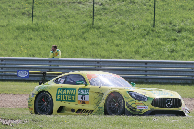 Für die zweite MANN-FILTER Mamba lief es dagegen nicht so gut. Nachdem auch Maximilian Götz und Markus Pommer im Rennen stark unterwegs waren und ihren Konkurrenten einheizten, streikte der Mercedes 15 Minuten vor Schluss und Götz musste sich das Rennende vom Streckenrand aus anschauen. „Ich konnte plötzlich nicht mehr schalten“, erklärte Götz enttäuscht. „Sehr schade, bis dahin lief es super. Mit einer schnellen Out-Lap nach dem Stopp kam ich an Scheiders BMW vorbei, hing aber dann hinter dem von Klingmann fest. Ich glaube, wir hätten noch gut vorfahren können, dann trat leider das Problem auf.“