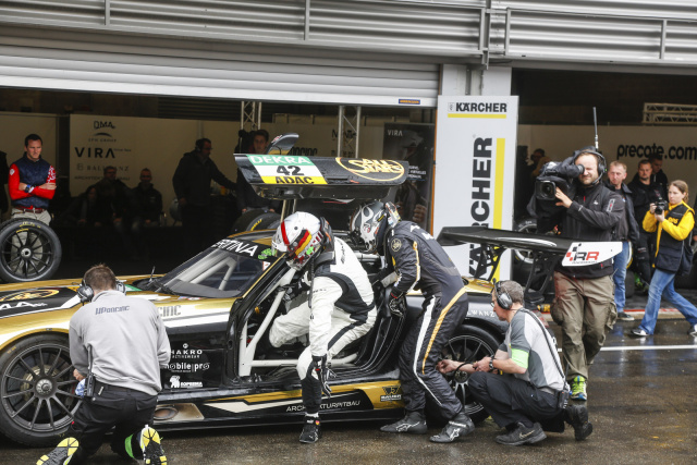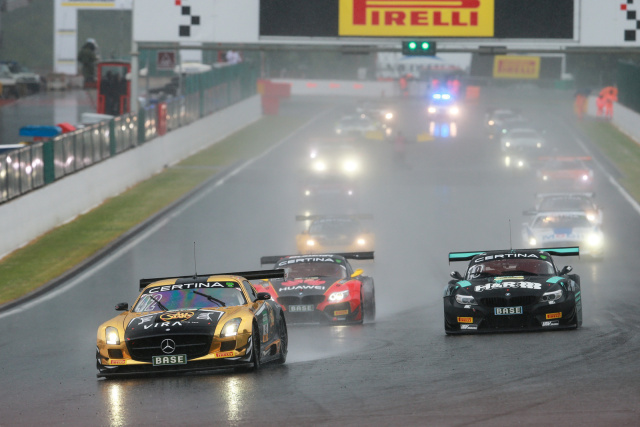Der Start wurde für die ADAC GT Masters-Piloten zu einer Nervenprobe. In der Einführungsrunde setzte starker Regen ein, der Rennleiter brach daraufhin das Rennen noch in der Formationsrunde ab, um allen Teams die Möglichkeit zu geben, sicher auf Regenreifen zu wechseln. Nach kurzer Unterbrechung wurde das auf 51 Minuten Dauer verkürzte Rennen gestartet.