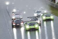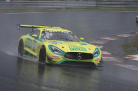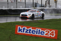 Kurz vor dem Rennstart begann es heftig zu regnen. Maximilian Götz ließ sich davon nicht beeindrucken und hielt seinen zweiten Platz. Nach einigen Runden erbte er sogar die Führung, weil der bis dato vorn liegende Lambo mit Motorproblemen in die Box musste. Götz konnte seine Führung souverän ausbauen und ließ im Starkregen sein Können aufblitzen. Als nach der 12. Runde das Safetycar wegen eines Unfalles auf die Strecke musste, hatte Götz seinen Vorsprung auf unglaubliche 20 Sekunden ausgebaut. Kurz darauf brach das Chaos in der Boxengasse aus, da fast alle Autos gleichzeitig zum Pflichtstopp herein kamen. Der AutoArenA-AMG wurde zugeparkt und konnte unter Patrick Assenheimer, der inzwischen im Auto saß, nur nach umständlichen Rangieren das Rennen fortsetzen. Dadurch fiel man auf den 5. Platz zurück. Aber es kam noch schlimmer. Wenige Runden nach dem Restart verlor Patrick bei schwierigsten Bedingungen das Auto und schlug in die Leitplanken ein. Damit war das Rennen für die beiden beendet.