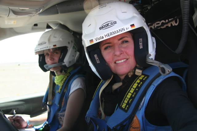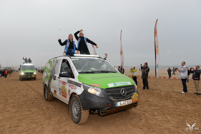Ganz anders das zweite deutsche Vito-Team mit der Nummer 319. Fahrerin Andrea Spielvogel hat bereits zweimal diese Rallye bestritten und im Jahre 2011 sogar ihre Klasse gewonnen. Beifahrerin Julia Salomon, wie auch Spielvogel bei Daimler beschäftigt, kann ebenfalls auf die Erfahrungen von zwei Rallye-Einsätzen zurück greifen. Dieses Team hatte von Anfang an Sieg-Ambitionen. Sie kamen auch gut durch die Rallye, leisteten sich keine großen Fehler und hielten sich eng an die Ideallinie. Nur einmal verfuhren sie sich leicht und mussten durch extreme Dünen, die eigentlich den stärkeren Fahrzeugen der 4x4-Kategorie vorbehalten waren. Zum Erstaunen aller wühlte sich der Vito durch dieses extreme Gelände und zog sich nur ein paar kosmetische Blessuren zu. Trotz der sehr guten Leistung reichte es nicht ganz zum Sieg, so dass man einen tollen zweiten Platz mit nach Hause nimmt.