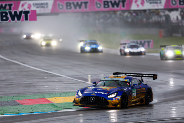 Am Mittag setzte Regen ein, der bis zum Rennstart immer stärker wurde. Der Start verzögerte sich um rund 25 Minuten und erfolgte hinter dem Safety Car. Maro Engel zeigte ein starkes Regenrennen auf der 4,574 Kilometer langen Strecke, belegte Rang vier und verkürzte seinen Rückstand auf Lucas Auer auf neun Punkte. Auer, der zum Rennen fünf Kilogramm Erfolgsballast für Platz drei am Red Bull Ring zuladen musste, sicherte sich mit einem soliden Platz zwölf dennoch wichtige Zähler für die Meisterschaft. Auch Tom Kalender schaffte es mit Platz 15 in die Punkteränge. Jules Gounon hingegen musste seinen Mercedes-AMG GT3 #48 nach dem Pflichtboxenstopp abstellen, da das linke Vorderrad nicht korrekt befestigt war.