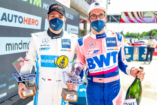 Der traditionsreiche Autodromo Nazionale Monza bildete den Schauplatz für das Comeback von Mercedes-AMG in der DTM, eine Serie, die die Performance- und Sportwagenmarke aus Affalterbach mit 11 Fahrer-, 14 Team- und sieben Herstellertiteln entscheidend mitgeprägt hat. Beim ersten von insgesamt acht Saisonevents gelang den Fahrern der Mercedes-AMG Teams mit einer starken Performance in Qualifying 1 ein sehr guter Auftakt. Vier Mercedes-AMG GT3 belegten im Zeittraining die ersten vier Plätze. Schnellster Pilot war Vincent Abril, der sich in der #5 des Mercedes-AMG Team HRT die erste Pole Position der DTM-Saison sicherte. Nach dem fliegenden Start, bei dem Abril souverän die Führung verteidigte, lagen zwischenzeitlich sogar fünf Mercedes-AMG GT3 an der Spitze. Aus diesem Quintett blieb das HRT-Duo Abril und Maximilian Götz (#4) im weiteren Verlauf klar auf Podiumskurs. Bis zur Mitte des Rennens führte Abril das hochkarätig besetzte Feld an. Beim vorgeschriebenen Reifenwechsel konnte der Verfolger jedoch aufschließen. Kurz nach der Rückkehr auf die Strecke musste Abril den späteren Rennsieger Liam Lawson im red Bull Ferrari schließlich passieren lassen und wurde Zweiter vor seinem Teamkollegen Götz. Nach 50 Minuten bescherten sie damit Mercedes-AMG im ersten DTM-Rennen seit 2018 ein Doppelpodium. Mit Daniel Juncadella in der #8 des Mercedes-AMG Team GruppeM Racing auf Platz fünf und Maximilian Buhk in der #18 des Mercedes-AMG Team Mücke Motorsport auf Rang sieben fuhren zwei weitere Mercedes-AMG GT3-Piloten die ersten Meisterschaftspunkte der Saison ein.