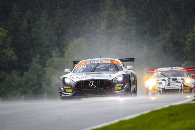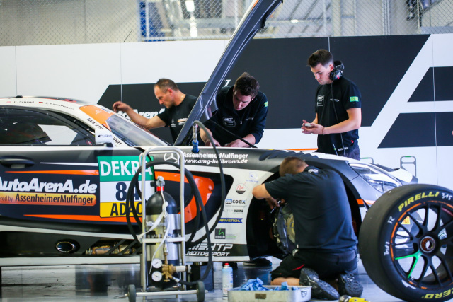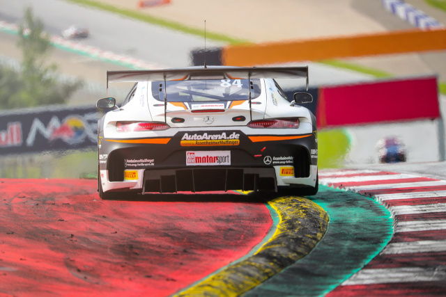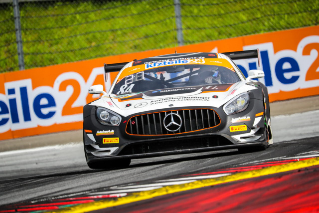 Ähnlich unglücklich ging es im Verlaufe des Rennwochenendes weiter. Am Samstag war Patrick gerade auf einer schnellen Qualifikationsrunde, als bei seinem Mercedes-AMG GT3 wieder auf unerklärliche Weise die Schraube eines Querlenkers brach. Als Folge stand nur ein 31. Startplatz zu Buche. Von dort hinten lieferten Patrick und Clemens eine blitzsaubere Leistung ab, kämpften sich durch das enge Feld und konnten am Ende den 23. Platz belegen. Angesichts des Startplatzes und des verlorenen Tests eine gute Leistung, zufrieden konnte aber keiner sein.