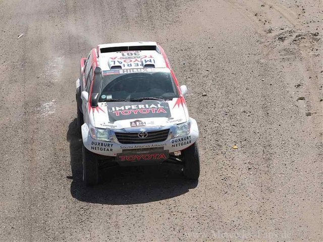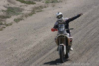 Er stand bisher total im Schatten seiner beiden Teamkollegen auf den SMG Buggies Chabon und Errandonea. Die alten Hasen hatten absolut die Nase vorn, aber heute bringt er das Potential seines Buggies auf die Erde und fährt fast einen stagewin ein. Nur 36 Sekunden trennen ihn im Ziel von Al Attiyah. Dabei muss man aber auch sagen, dass Chabot, im übrigen einer der größten Mercedes Händler in Frankreich und auf dem Papier Gentlemandriver (in Wahrheit wahnsinnig präzise vorbereitet und seit vielen Jahren immer gut dabei) gestern einen kleinen Einschlag in die Dünen hatte und heute immer noch mit den Folgen kämpfe, nachdem ein vorderer Dämpfer bereits nach einem Kilometer den Dienst quittiert. Da sehen wir sicher noch einiges. Peterhansel sichert sich mit einem dritten Platz zwar die Gesamtführung, ist aber genauso unter Druck, wie Cyril Depres in der Moto Kategorie, der sich diversen Huaquarna , Hondas und Yamahas geschlagen geben muss.