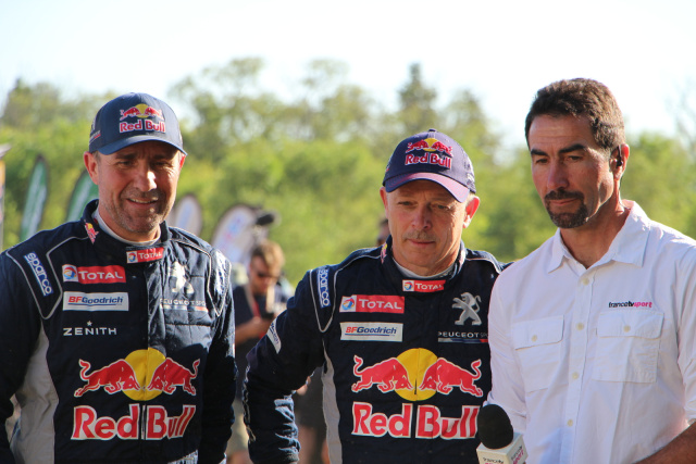 Der Routinier gegen den Allrounder, beide auf einem überlegenen Peugeot 3008 DKR Rallye Prototypen unterwegs. Diese beiden konnten sich eigentlich nur selber schlagen. Nachdem Carlos Sainz, ebenfalls mit einem Dakar-Sieg ausgestattet, der wie so oft schon früh das Rennen durch Unfall beenden musste und Cyril Despres der vierte im Bunde der Franzosen, in den entscheidenden Momenten nichts gegen die beiden Kampfhähne entgegensetzen konnte, kam es zum Showdown auf der vorletzten Etappe.