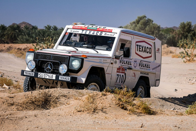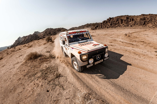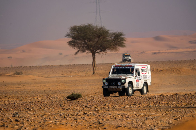 Die Fahrer mussten sich nicht nur auf ihre Technik verlassen, sondern auch auf ihre Erfahrung, um durch die Wüstenlandschaft Saudi-Arabiens zu navigieren. Besonders knifflig waren mehrere Sektionen mit dichtem Fesh-Fesh-Sand, der für klassische Fahrzeuge mit begrenzter Leistung und älteren Fahrwerken oft ein Hindernis darstellt. Erfreulicherweise blieb die G-Klasse auf der 9. Etappe von unangenehmen Überraschungen verschont. Dazu Jörg: „Jetzt sind noch drei Tage zu fahren und wir liegen auf dem achten Platz in der Classic-Gesamtwertung. Jetzt gilt es im Blick zu behalten, ob uns noch jemand diesen Platz streitig machen könnte. Also wird es jetzt ganz wichtig sein, das Auto heil in die letzten Etappenziele zu tragen!“