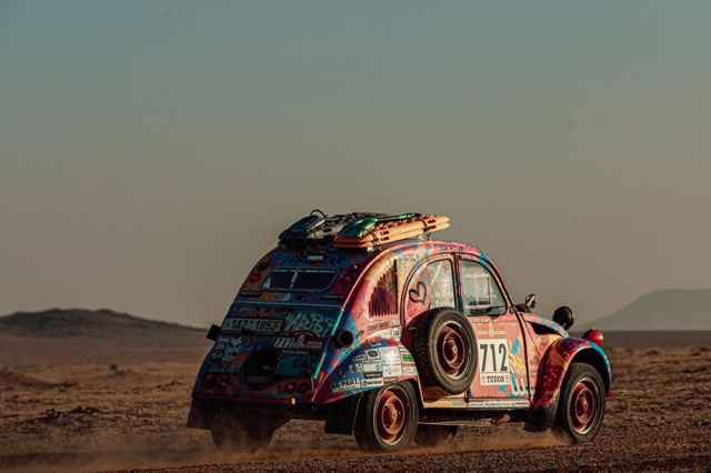 Wer erinnert sich noch an die ganzen Geschwader an Citroën 2CV-Enten bei der Dakar? Von 1979 bis 2007, als die letzte „Ente“ an der Dakar teilnahm, versuchten zahlreiche 2CV ihr Glück, aber keiner schaffte es je bis ins Ziel. In diesem Jahr nehmen zwei Fahrzeuge an der Dakar Classic teil, darunter ein Modell von 1968. Das älteste Fahrzeug der Veranstaltung startete heute Morgen auf dem 68. Platz von insgesamt 80 Fahrzeugen, die noch im Rennen sind. Der Citroën des Teams 2Chameaux von Floris de Raadt und David Kann ist auch der leistungsschwächste im gesamten Biwak, denn sein Originalmotor leistet nur 38 PS. Die Crew hat ohne vorherige Tests auf Winterreifen gesetzt, die sich auf saudischen Pisten allerdings als anfällig erwiesen haben, so dass ihr Reifenvorrat in der Sonne wie Schnee schmelzen könnte. De Raadt und Kann durchforsten Saudi-Arabien nun nach Winterreifen!