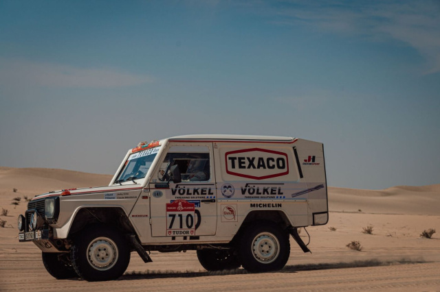 Mit einer 40 Jahre alten G-Klasse und zwei klassischen Mercedes 6x6 als Service-Trucks bei der härtesten Rallye der Welt? Vom 3. -17. Januar führt die Dakar Rally zwei Wochen über 7500 zu fahrende Gesamtkilometer durch die Wüste Saudi-Arabiens. Eine Woche liegt bereits hinter Jörg Sand und Patrick Diemer, die mit einer Replica des 280 GE von Jackie Ickx im VÖLKEL Dakar Team antreten. Immerhin konnte das Original die Dakar Rally 1983 gewinnen, Jörg und Patrick gelang im letzten Jahr immerhin ein Klassensieg. Jackie Ickx besuchte das Team am Ruhetag der Rallye zur Rennmitte in Ha`il. Ein gutes Omen? Denn eine Spazierfahrt ist das nicht. Kategorie Classic haben sich zuletzt sechs Autos mit Überschlag verabschiedet.